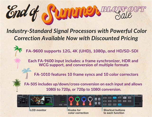 As those hazy days of summer draw to a close, it's time to seize the moment and make your production dreams a reality. Our exclusive End-of-Summer Blow Out Sale continues with unbeatable deals on the FA-9600, FA-1010, and FA-505 multi-purpose signal processors.